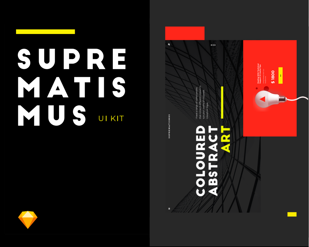 SUPREMATISMUS_UI is a web UI Kit crafted in Sketch, using a 12 Column Bootstrap grid with 1170px width. This kit includes ready to use components, symbols, library of icons, and 6 pre-made example page templates based on Landing Page. SUPREMATISMUS_UI is well organized & easy to customize, this UI Kit is a must for your next project!